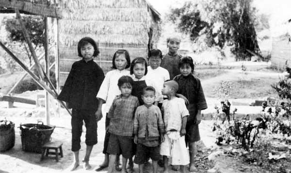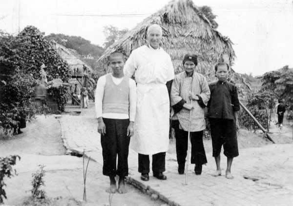 广东江门,麻疯病院内,完全自费的志愿者Sherry医生(左二)(1936年)。