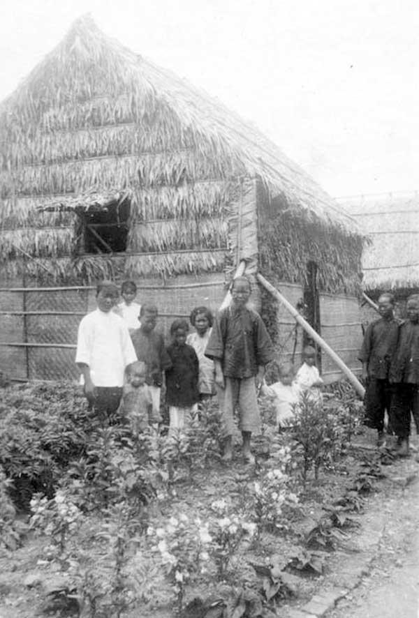 广东江门,麻疯病隔离区内的患者和医生(1930年)。