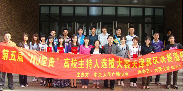 天津市20余所高校的选手参加了初选,我校、河北工业大学的13名选手脱颖而出进入天津赛区决赛。我校宣传部副部长宋雪峰在比赛中致辞。他说,天津大学自去年起开始承办NJ星贵天津赛区的比赛,选拔出了一批优秀的广播人才,充分体现了天津高校学子的风采,希望今天的选手能取得更好的成绩,表现出最好的素质和水平。我校宣传部副部长韩宝志、天津人民广播电台新闻频道制片人、主播阎卫,天津人民广播电台文艺频道主播一丁、天津商业大学宣传部教师杨璐伊担任评委。比赛分为演讲和才艺展示两部分。选手们的演讲或激情澎湃、或娓娓道来,联系所在的学校和自身表达对党和国家的热爱和支持。在才艺展示阶段,选手们表演了快板、诗朗诵、歌曲独唱、相声等节目。评委们对每一位选手的表现一一进行了点评。最终,天津师范大学李冠坤获得一等奖,天津大学丁一、天津师范大学高学鹏分获二等奖,三等奖由河北工业大学范从珊、刘芮和仁爱学院姚恬然捧得。