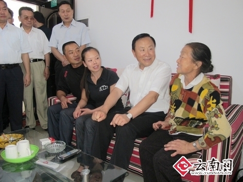 张新枫(右起二),孟苏铁(右起三)等领导到开远“雨露社区”视察指导工作