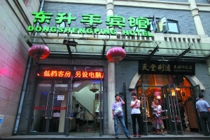 多少年过去,6月一个雷阵雨的下午,服务员在东升平宾馆的前台忙着接待前来住店的外地游客,她忙着往电脑中输写资料,然后带客人上楼去。“对,我们这里是后来专门改回去的名字,老建筑,新装修”。