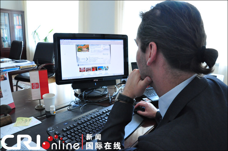 波兰驻华大使馆文化参赞梅西亚浏览“2011中国城市榜”官网页面
