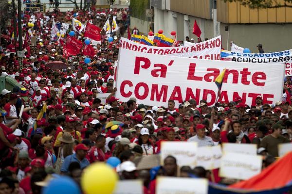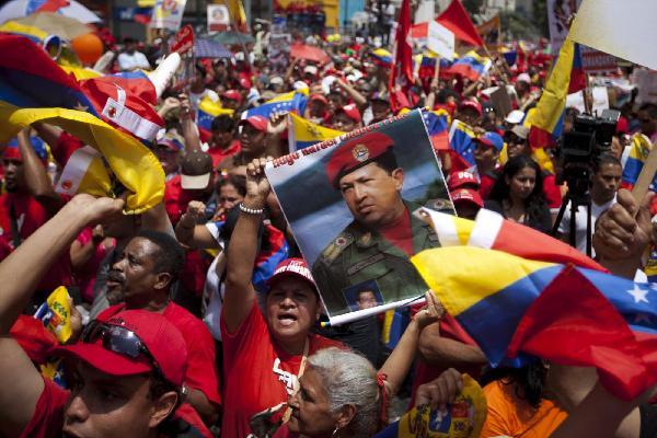2011年7月3日,在委内瑞拉首都加拉加斯,总统查韦斯的支持者举行集会。