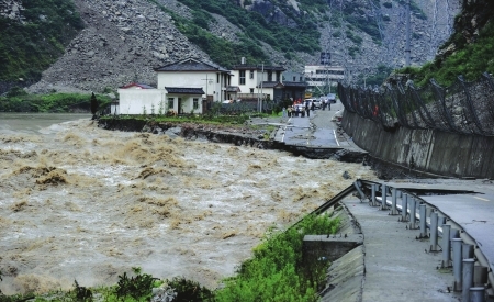 | 213国道罗圈湾处被彻底冲毁杨涛摄 |