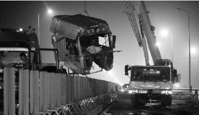 从事发凌晨2点开始,到9点45分,出事大桥一段恢复单侧通行,仅仅用了不到8个小时。