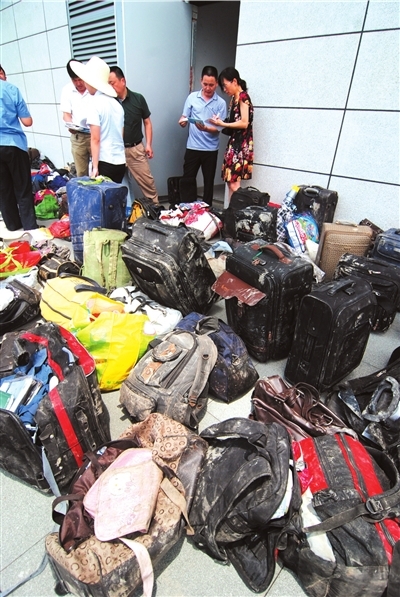 在行李存放现场,记者看到了堆放的上千件行李,工作人员一边整理,一边给它们编号,并进行存档。