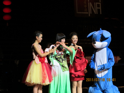 我们的节目有京剧《梨花颂》和歌舞《赶集》,每位演员心情都很激动,在舞台上展示自己最美的舞姿和才艺;当《梨花颂》节目开始时,现场响起了热烈的掌声,心里小小的紧张一下就放开了,我们的动作、大家的感情完美地投入到音乐中,观众为之感染掌声雷动。然后7分钟时间准备下一个节目《赶集》,小红叶们以整齐的歌声和舞蹈动作来表现湘西少数民族少女的美丽与勤劳。
