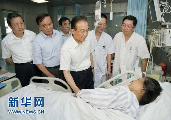 这是温家宝到温州市第二人民医院看望伤员。新华社记者 黄敬文 摄