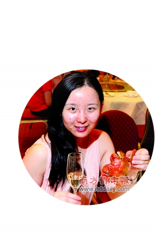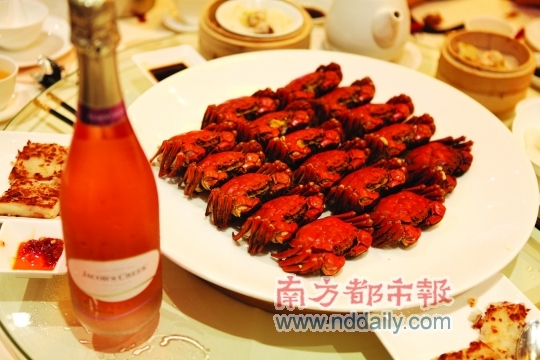 对地道上海人来说,金秋时节吃大闸蟹是家中不可或缺的传统,期待了一年,蒸好的螃蟹红得鲜艳,一端上餐桌就透着喜庆劲儿。Crys-tal从小受此熏陶,也是“蟹粉”一枚,不过在餐酒搭配上,却有自己的创意:“吃海鲜喝啤酒容易引起痛风,不利健康;黄酒又略显老气横秋,格调不搭。起泡葡萄酒最合时宜,口感清爽,冰镇之后清凉消暑。”在广州利苑,Crystal既尝到了一直“喜欢”的粤式点心,蟹黄小笼包让她口口生鲜;又偶遇了广州大闸蟹老字号天龙行的当季大闸蟹“六月黄”,实践了自己的“海派智慧”———以杰卡斯“莫斯卡托”桃红起泡酒和杰卡斯“莎当妮·黑品诺”起泡酒搭配“清蒸六月黄”。