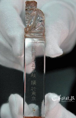 其中陈列着一枚水晶印章,印章的主人是“武装占领日本”的廖季威……