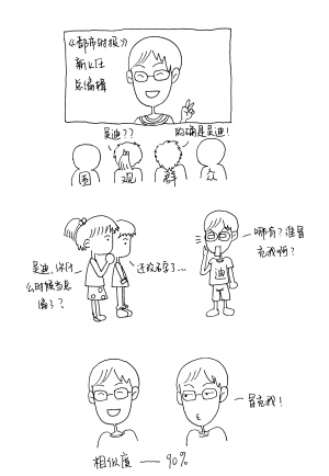 面前的朱静雅,面容清秀,脸上有一点点婴儿肥,后脑勺扎个小马尾,显得非常可爱,也学生气十足。初看朱静雅的漫画,感觉随性,不注重技法,有几分“章法错乱”之象,更无格式可循,不能随大流命名×格漫画”,在不好取名的情况下,暂且叫“朱小雅漫画”。