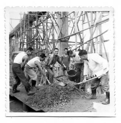我们陪同工作团、县委、公社三级领导视察工作队帮广发农民修建的引水工程——渡槽。