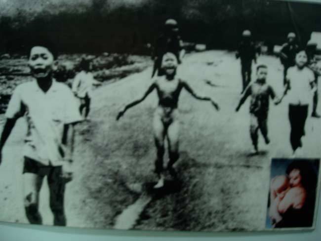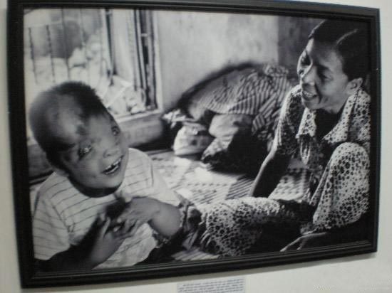 越南战争证迹博物馆通过战地照片、受害者战后生活图片,再现出惨绝人寰的“战争罪行”。韩胜宝 摄