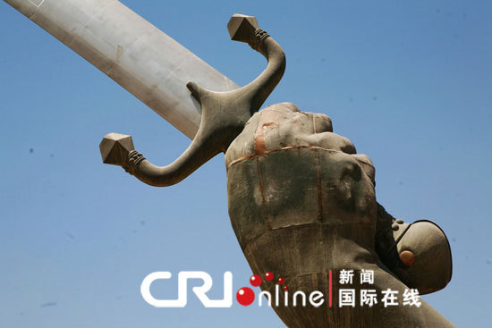 “绿区”里的标志性雕塑——胜利之剑(摄影 饶彬彬)