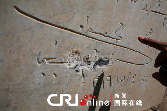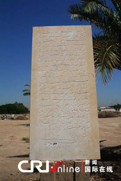 两伊战争纪念碑上的萨达姆的签名已被抠去(摄影 饶彬彬)