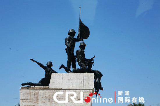 “绿区”中心环岛上的雕像(摄影 饶彬彬)