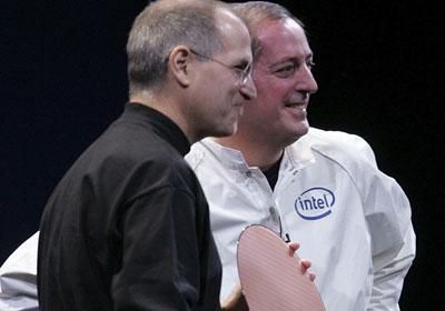 2006年1月10日,乔布斯同英特尔CEO欧德宁一起展示了第一款采用英特尔处理器的Mac计算机,这令很多Mac“粉丝”难以想象。乔布斯表示,苹果放弃Power PC芯片主要由于该产品开发过于缓慢。
