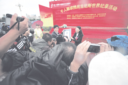 吉尼斯世界纪录认证官吴晓红告诉记者,能在足球起源地临淄亲自见证千人颠球挑战吉尼斯世界纪录取得成功,是她倍感荣幸的事情。“由于下雨,外界自然条件非常不利,挑战难度打打加大,但挑战者们仍然一次性取得成功,我感到非常震撼。”
