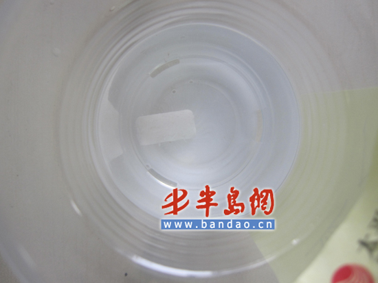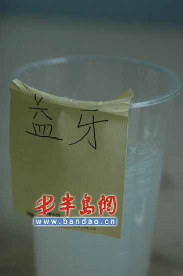 在浸泡了20分钟后,记者依次晃动塑料水杯,并用汤匙轻轻搅动底部的包衣溶解物。记者发现除装有片装口香糖的水杯外,其他水杯内均出现了浑浊的水样,其中以益达、好丽友、雅客益牙浑浊情况最为严重,乐天的浑浊情况较轻,杯壁处略微沾有白色物质。