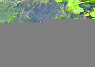 老董引路,我们向塘口赶去。来到塘口边,果然发现两只螃蟹趴在水草上蜕壳,其中,一只蟹的壳刚刚裂开,另一只螃蟹的壳已经裂开了三分之二,半个身子已经能明显的看出来。