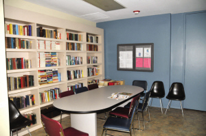 公寓活动室很宽敞,每年的圣诞晚会和节日聚餐都在这里举行。如果有老人得到了新的电视剧DVD,还会在这里“公映”给大家看。每层大楼的转角处都有个休息区,里面有不少书,算是小型的公共空间。公寓里还有另外一个活动室,老人们时常会在里面唱唱卡拉OK、打台球、喝咖啡、排练节目。