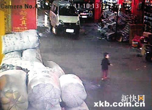 15日晚,记者看到了事发时的监控视频,当天下午5时26分,悦悦一个人走在五金城内的一条小巷。这时,前方一辆白色面包车缓缓驶来,司机像没有看到悦悦一样,开始加速,并将悦悦卷到了右侧车轮下,前轮碾过胸,后轮从悦悦的胯部碾过。但面包车停了一下后,又加大油门,后轮再次碾过悦悦的身体。