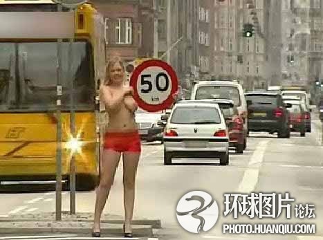 为了驾驶及用路人的安全,网络流传丹麦有种特别的限速法视频,据说当地政府会派一位上半身全裸的女警,拿着该路段的限速标志,呼吁驾驶人照过来,看看她身上高举的限速牌子。一位司机表示,“突然看到路边一裸体MM,没理由不减速。”