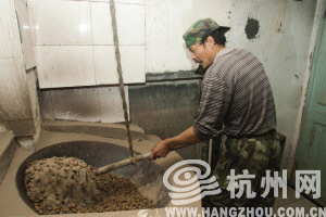 所以,炒香榧的时候,他和老婆是秤不离砣、砣不离秤的,一人炒上三五分钟,就得换下人,两人轮流着来。