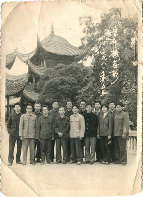 1981年5月,长沙市文学工作者协会组织长沙市的“文学青年”第一次远行,深入洞庭湖区采访,成为1980年代最美好的记忆,不过霍红、徐晓鹤等参加本次活动的文学青年并没有出现在这幅相片上。前排左起李廉颇、郭味农、童永芹、周全胜、胡启明、尹紫云、李渔村;后排左起;左宗华、黄林石、两位航道局人员、易允武、瞿振振、寇丹。