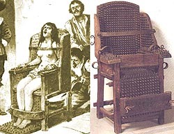 不仅有数以百计的微小钉尖让人感到难以坐住,通常还在下面点火将铁椅子烤到一个可怕的烫伤热度。