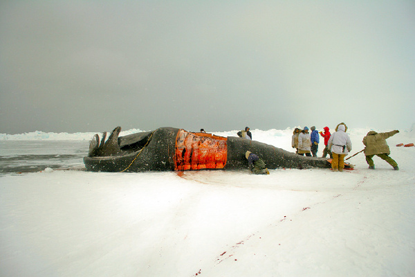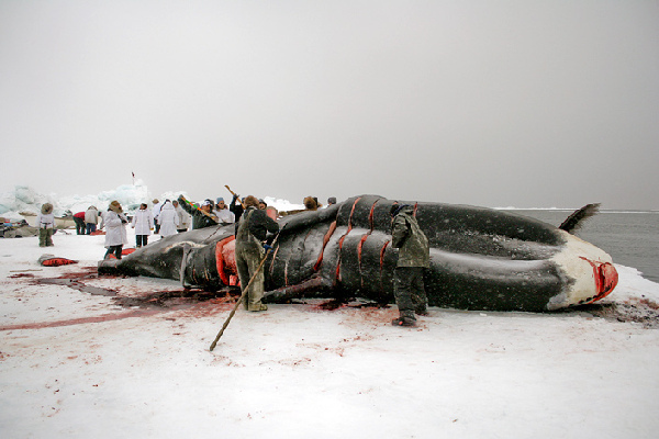 狩猎是爱斯基摩人的传统生活方式。或者说,在北极地区狩猎是爱斯基摩人的“特权”。爱斯基摩人已经有一千多年的历史捕鲸。但是他们从来没有威胁到鲸的生存。而只有西方捕鲸者,他们想捕鲸鱼赚钱,他们用鲸须干什么呢?
