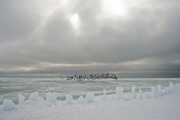 捕鲸活动对爱斯基摩人来说,要投入大量的人力和物力。每年3月底,村里的捕鲸船全部整装待发,至少2/3的男人要参加捕鲸队,还有一部分妇女为捕鲸队员做饭。该地区的爱斯基摩捕鲸队将集中到鲸群经常出没的地方,选择有利地形,安营扎寨。每艘船一般间距约200米。每个铺鲸队都有自己的狩猎范围,阿拉斯加地区的霍普角和库兹布湾每年夏天都吸引着很多捕鲸队。捕鲸队到达目的地之后,便开始每天24小时的守望。美国人Andrew Moore和Jonathan Harris用了9天的时间,见证了阿拉斯加的爱斯基摩人狩猎鲸鱼的全程。