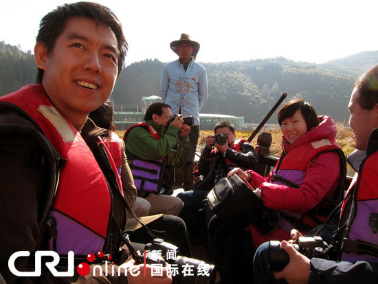 每一位来到湿地体验的游客都必须穿上救生衣才能被允许登船,虽然这是正是枯水期,水位不高,但是安全防范措施依然要严格执行。张攀摄