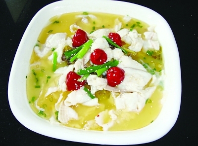 做法:1、鲜鱼经剖杀,去鳞、鳍、鳃和内脏洗净,用刀片下两扇鱼肉,另将鱼头劈开,鱼骨斩成1.5厘米大小的块;泡青菜稍洗,切成短节;蒜剥成瓣洗净;姜洗净切片;泡红椒碾成细末。2、锅置火上,下油烧至五成热,放蒜瓣、姜片、花椒爆香,再下泡青菜煸炒,掺鲜汤烧沸,下鱼头、鱼骨块猛火熬煮,烹入料酒,下川盐、胡椒粉调味后,继续熬煮。3、鱼肉斜刀片成厚3毫米带皮鱼片,入碗,用川盐、料酒、味精码味,再倒入蛋清,拌匀使鱼片裹上一层蛋清,再将鱼片逐渐抖散,放入熬煮的鱼汤锅内。4、另锅置火上,下油烧至五成热时,下泡辣椒末煸炒出香味后,迅即倒入汤锅煮几分钟至鱼片断生,下味精提鲜,起锅即成。柳扬 整理
