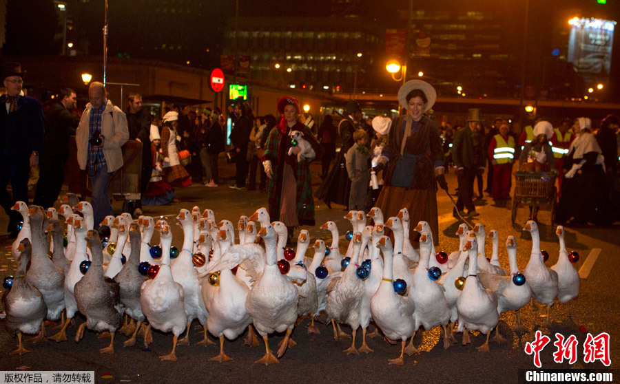 当地时间1月5日,西班牙各地举行主显节游行。据悉,主显节是天主教及基督教的重要节日日,以纪念及庆祝耶稣在降生为人后首次显露给外邦人(指东方三贤士)。图为在西班牙马德里,一群被盛装打扮的鹅也赶上街参加游行。