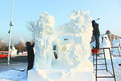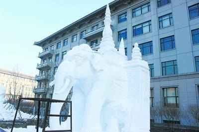 泰国队曾获得第三届雪雕大赛的第一名,本次大赛刚刚开始,他们就向组委会提出要求,希望雪块附近的夜灯能开到凌晨3点。“雪雕到后来会有很多需要精雕细琢的地方,这样的细节如果白天雕的话,有可能被太阳一晒就模糊了,只有在晚上把它定型才能一直保持原样。”哈工程志愿者王依兴介绍。