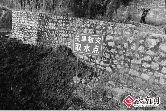 丁先生家旁边就是富源县2009年建的抗旱救灾取水点,“前两年干旱的时候,周围十几个村子的村民都来这里取水。”1月25日,这个支撑着周围上万人生命的取水点也干了……这个取水点的水是从村子背后的大山里引来的地下水,100多年来,这股水从来没有干过,随着3年连旱,这条百年清泉也撑不住了。