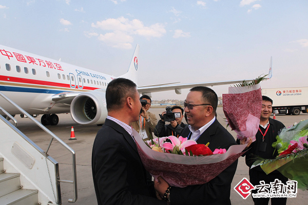 民航云南监管局局长余国强,东航云南有限公司总经理石富康,党委书记李云峰等领导到机场迎接驾机归来的机组人员。