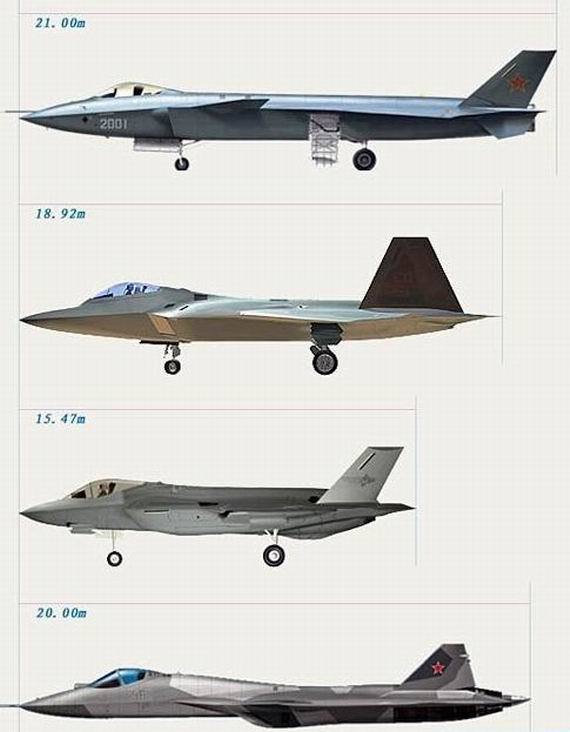 歼-20、F-22、F-35、T-50对比图
