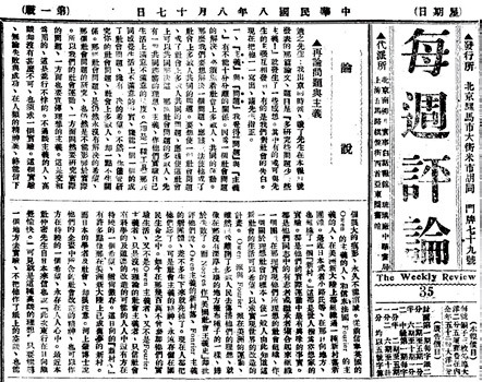 《每周评论》发表的李大钊《再论问题与主义》