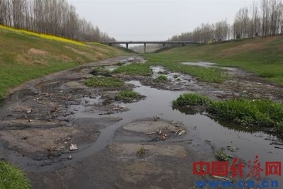 污水在郭庄村附近流入奎旺河的一条支流,顺着河道流入上蔡县,汇入沙河。