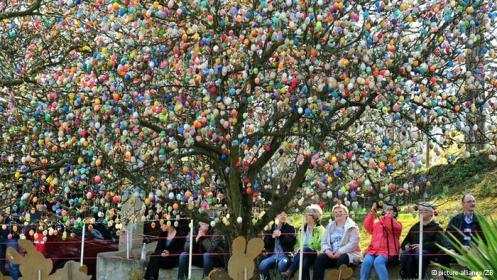 在德国,复活节还有一个保留节目——寻找复活节兔子带来的彩蛋。在德国萨尔费尔德市,很多人把彩蛋挂在树上庆祝节日。