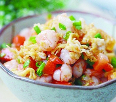 做法:1、虾挑去虾线,剥除虾壳成虾仁,鸡蛋打散成蛋液,西红柿去皮切成块。2、锅烧热倒油,放入蛋液炒熟盛出待用。3、锅中留底油,倒入虾仁炒至变色,放入西红柿块,加一些白糖翻炒至出汤,再倒入鸡蛋块。4、调入盐炒匀即可。