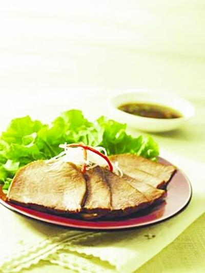 做法:1.将牛舌洗净,沥水,装入盘内放入盐和硝水,腌八小时左右待用。2.取一铝锅,倒入清汤,放到中火上,放入牛舌、葱、姜、料酒、盐、白糖、酱油,把花椒、八角,用纱布包起来下锅。烧开,撇去浮沫,转小火,卤约四小时,待牛舌熟时,捞出沥汤,趁热撕去牛舌皮。3.将铝锅离火,放入牛舌,泡三小时,捞起沥汤,改刀成片状,装入盘内,淋少许香油即可。