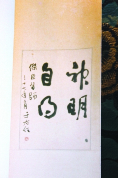 “就这样,于右任和我父亲有了一些交往。后来,于右任觉得父亲的医术好,便主动给父亲题字。”陶昆说,第一幅题字是“神明自得,杰臣医师”,落款是“三十七年二月,于右任”,父亲很喜欢,挂在诊所中堂最醒目的位置。“神明自得”出自《荀子·劝学》:“积善成德,而神明自得。”意思是积累善行,养成高尚的品德,那么就会达到很高的境界。于右任借用这四个字来赞扬杰臣医师的医术达到很高的境界,是很高的评价。