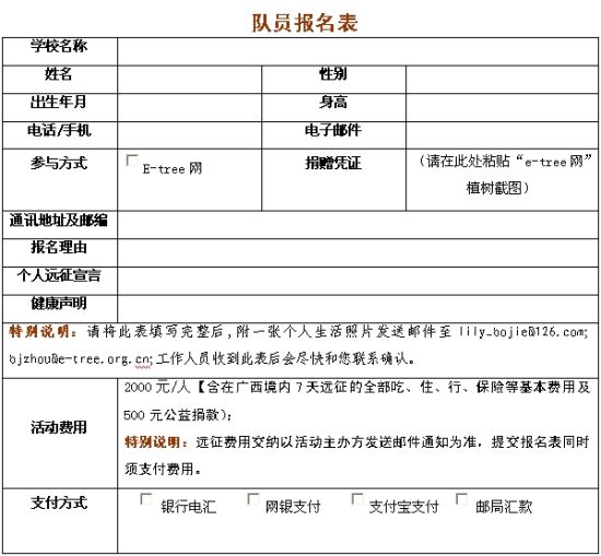 1. 报名者须身体健康,无重大疾病史,能承受15公里的徒步行走路程;