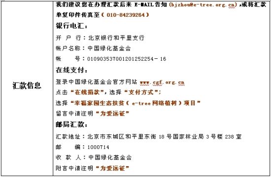 3. 通过“e-tree网络植树”公益网2.0平台,为社会公众提供参与植树造林、低碳生活、应对气候变化公益行动的便捷途径,使其通过小额持续捐赠方式,援助深受气候变化影响的贫困人群获得可持续发展。
