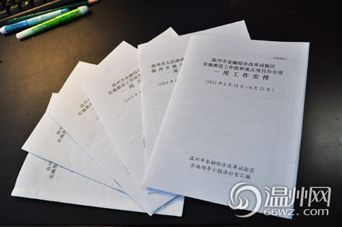 不止是629办公室,整层楼都弥漫着紧张而又忙碌的气氛。在电梯口正对的墙上悬挂着一台显示屏,上面清楚地写着金融工作办公室领导今天一天的工作行程,光是金融办主任张震宇的行程就已经排得满满的:上午8:30赴市人事局对接有关人事工作;9:30陪同王祖焕副市长赴浦发银行温州分行调研;10点接待商务部客人;14:30赴鹿城区参加有关金融改革座谈会……楼层的接待室和两个会议室也从没闲过,每天都要迎接好几拨客人来考察、开会。