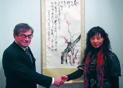 作品在法国卢浮宫展览,与法国美协主席IsabelleLawson合影。