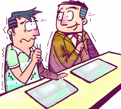 近日有报道称,在上班族中流行起一种跟吃饭有关的病症——午饭恐惧症,说的是有些白领一到午饭时间就产生恐惧,有的是担心在食堂遇到领导一起吃午饭没话说很拘谨,有的则是因为找不到一起吃饭的同事被孤立,还有的是因为跟同事吃饭找不到话题彼此尴尬。记者为此采访了若干资深上班族,整理出午饭最佳话题晋级表,为你化解午饭恐惧症。